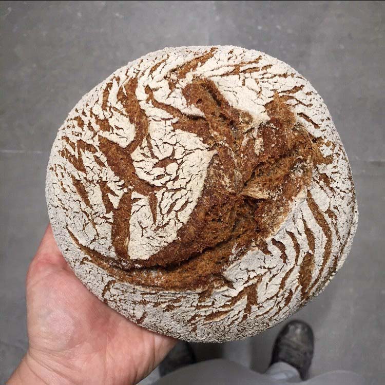 Volkorenmeel van het oergraan Turkey Red Wheat, water, desem, zonnebloemolie, zout