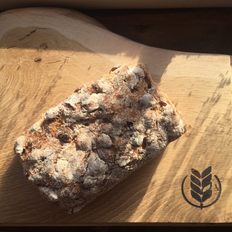 Volkorenmeel, roggebloem, water, desem, gist, zout, honing, zonnebloemolie, rozijnen, krenten.